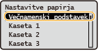 Ko registrirate privzeto nastavitev papirja, se pri nalaganju papirja ne prikaže zaslon za nastavitev papirja, saj se vedno uporabi ista nastavitev. Če naložite drugo velikost ali vrsto papirja in ne spremenite nastavitev papirja, naprava morda ne bo tiskala pravilno. To preprečite tako, da v 3. koraku izberete <Določi pri nalaganju papirja> in nato naložite papir.