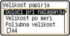 Če pogosto uporabljene velikosti papirja registrirate v gumbe <S1>–<S5>, jih lahko spet prikličete tako, da izberete <Registrirane velikosti>.Registracija papirja poljubne velikosti (papirja velikosti po meri)