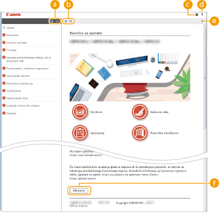 Kliknite za prikaz navodil za pregledovanje priročnika Navodila za uporabo, navodil za iskanje in drugih informacij.