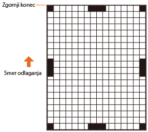 Vodilni rob izhodnega papirja je zgornji rob vzorca izpisa. Ko dvignete papir, si zapomnite, kateri rob je zgornji.