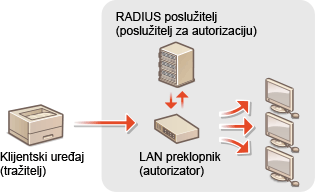 Ako se uređaj pokuša povezati i pokrenuti komunikaciju s 802.1X mrežom, mora proći provjeru autentičnosti korisnika da bi se potvrdilo da se povezuje ovlašteni korisnik. Podaci o provjeri autentičnosti šalju se na RADIUS poslužitelj gdje se provjeravaju, nakon čega poslužitelj dopušta ili odbija komunikaciju s mrežom, u skladu s rezultatom provjere autentičnosti. Ako provjera autentičnosti ne uspije, LAN preklopnik (ili pristupna točka) blokira vanjski pristup mreži. Uređaj se može povezivati s 802.1X mrežom kao klijentski uređaj. Konfiguriranje postavki autentikacije IEEE 802.1X