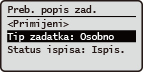 Odaberite vrstu dokumenta u odjeljku <Tip zadatka> na zaslonu <Preb. popis zad.>.