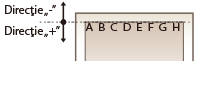 Când marcajele pentru verificarea poziției de imprimare sunt decalate, este necesară reglarea poziției de imprimare. Direcția poziției de imprimare poate fi specificată prin utilizarea unei valori pozitive (+) sau a unei valori negative (-), iar distanța poate fi specificată în milimetri. Pentru a efectua reglarea pe verticală, setați o valoare negativă (-) pentru a deplasa poziția de imprimare în sus sau o valoare pozitivă (+) pentru a deplasa poziția de imprimare în jos. Pentru a efectua reglarea pe orizontală, setați o valoare negativă (-) pentru a deplasa poziția de imprimare spre stânga sau o valoare pozitivă (+) pentru a deplasa poziția de imprimare spre dreapta.
