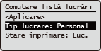 Selectați tipul de document de sub <Tip lucrare> de pe ecranul <Comutare listă lucrări>.