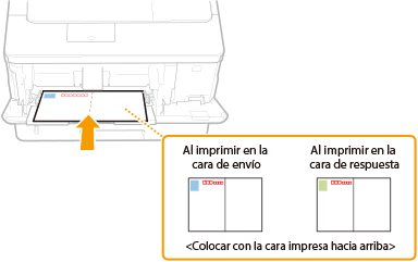 Esta sección describe cómo cargar tarjetas postales en la orientación correcta, así como los procedimientos que debe seguir antes de cargar tarjetas postales. Para obtener una descripción del procedimiento general para cargar tarjetas postales en la bandeja multiuso, consulte Método para la carga de papel básico.