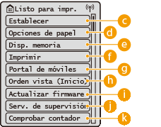 <Opciones de funciones>, <Preferencias>, y muchas otras configuraciones del equipo se inician desde este botón.