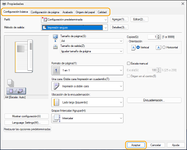 Especifique las opciones de impresión según sea necesario y haga clic en [Aceptar].