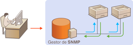 Con SNMP, la información de gestión de la impresora, tal como los protocolos de impresión y los puertos de la impresora, puede supervisarse y obtenerse regularmente desde un ordenador de la red.