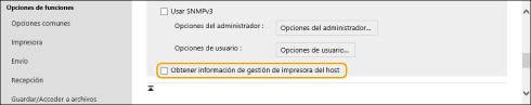 Haga clic en [Opciones de red]  [Opciones de SNMP].