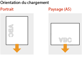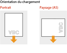 La méthode de chargement varie en fonction de l'orientation du papier comportant un logo imprimé (portrait ou paysage).