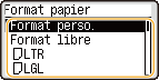 <Form pap incorr pour src pap form libre>Si le format de papier affiché est différent de celui du papier chargé, il est possible que le papier n'a pas été chargé correctement. Chargez le papier à nouveau.