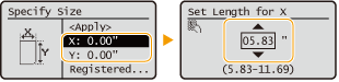 | Sélectionnez <X> ou <Y> pour spécifier la longueur de chaque côté avec le clavier numérique ou  /  . |