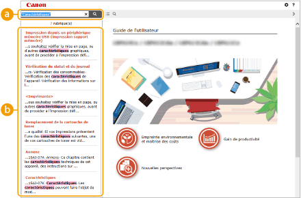 Affiche les résultats de la recherche associés aux pages contenant les mots-clés que vous avez stipulés. Dans la liste des résultats, identifiez la page que vous recherchez et cliquez sur le titre de rubrique de la page en question.