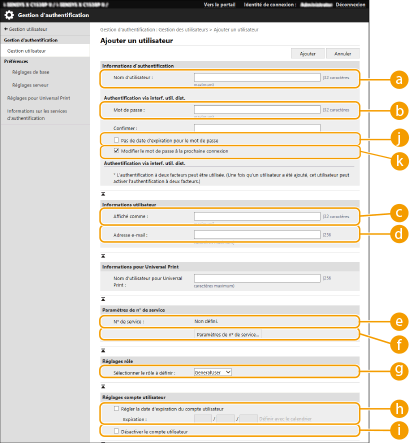 N'est pas modifiable. Est affecté automatiquement pendant l'enregistrement d'utilisateur.