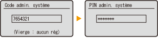 Vous pouvez aussi définir la saisie de sept chiffres comme exigence pour le code et le PIN de l'administrateur système. Pour plus d'informations, contactez votre revendeur ou représentant de service.
