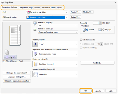 Sélectionnez [Impression sécurisée] dans [Méthode de sortie].