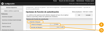 Seleccione [Permitir el bloqueo] y configure las opciones detalladas.