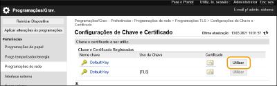 Clique em [Utilizar] para a chave e o certificado a usar na comunicação com criptografia TLS.