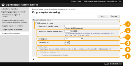 Selecione [Utilizar envio de syslog] e especifique as configurações necessárias.