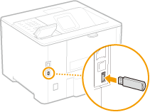 You can connect a USB memory device to the USB port located on the back side of the machine, and directly print data from the USB memory device.