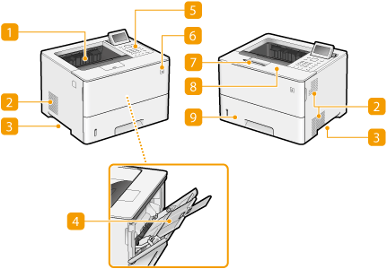 Air from inside the machine is vented out to cool down the inside of the machine. Note that placing objects in front of the ventilation slots prevents ventilation.