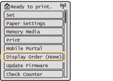 (Home). The <Home> screen or settings screen appears on the display, allowing you to initiate functions such as <Memory Media> and <Mobile Portal>. You can also use the display to check information such as error messages and the machine's operation status.