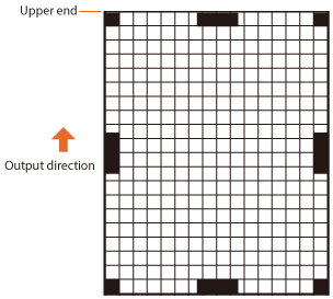 Marks for confirming the print position are printed on the sample print. The position of these marks determines the direction and distance for adjustment. Normally, all marks are printed on the edge of the paper.