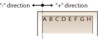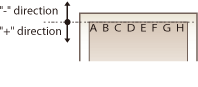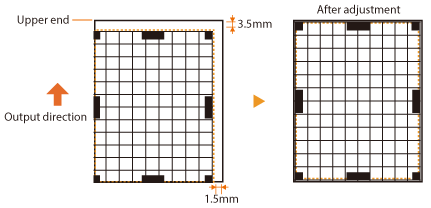 Print position adjustment is required when the marks for confirming the print position are lopsided. The direction of the print position can be specified using a positive value (+) or negative value (-), and the distance can be specified in millimeters. To perform vertical adjustment, set a negative value (-) to move the print position up or a positive value (+) to move the print position down. To perform horizontal adjustment, set a negative value (-) to move the print position left or a positive value (+) to move the print position right.