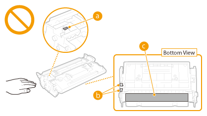 Do not replace toner cartridges until the message prompting you to do so appears. Be sure to hold the toner cartridge using the handle. Do not touch the toner cartridge memory (  ), the electrical contacts (  ) or the dram (  ). |