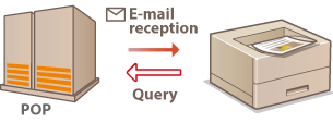 When the e-mail receiving starts, all e-mails stored in the mailbox of the mail server are printed. If you send e-mails that you want to print to the machine in advance, you can automatically print the e-mails at regular time intervals or print all stored e-mails in an arbitrary timing.