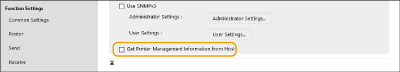Select the check box to enable monitoring of the printer management information of the machine via SNMP. To disable monitoring of the printer management information, deselect the check box.