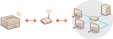 This machine does not come with a wireless router. Have the router ready. The wireless router must conform to IEEE 802.11b/g/n and be able to communication in 2.4 GHz bandwidth. For more information, see the instruction manuals for your networking devices or contact your manufacturer. |