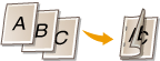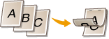 Prints data for multiple pages of image data on the same side of a sheet of paper. You can specify the number of pages to print on one side of a sheet of paper. For example, to print four pages on one side of a sheet of paper, select <4 on 1>.