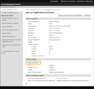 Cliquez sur [Gestion des licences] pour exécuter l'opération souhaitée.