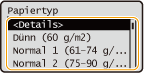 Um die genauen Einstellungen für einen Papiertyp zu prüfen, wählen Sie <Details>