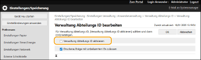 Wählen Sie [Verwaltung Abteilungs ID aktivieren].
