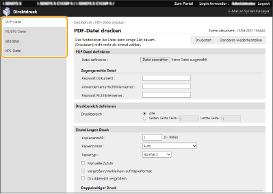 Klicken Sie auf der Portalseite auf [Direktdruck]. Remote UI-Bildschirm