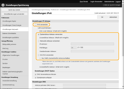 Wählen Sie [IPv6 verwenden] und konfigurieren Sie die erforderlichen Einstellungen.