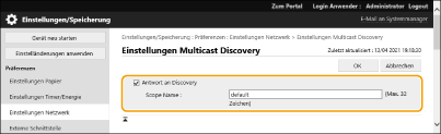 [Einstellungen Multicast Discovery].