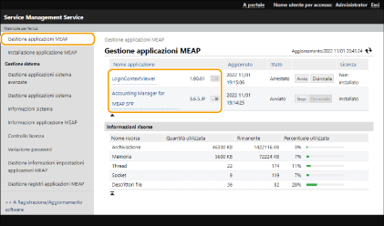 Fare clic su [Gestione applicazioni MEAP] e fare clic sull'applicazione per gestire la licenza.