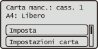 Se il formato/tipo carta visualizzato è diverso dal formato/tipo carta caricato, selezionare <Impostazioni carta> e selezionare la fonte carta in cui è stata caricata la carta.
