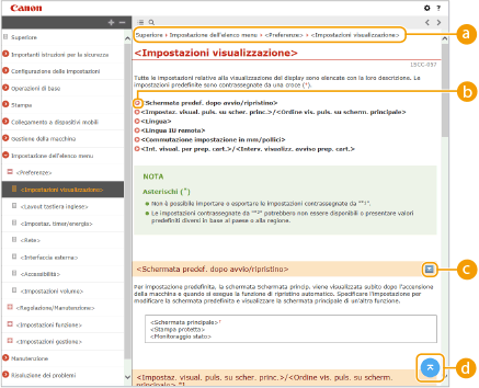 Fare clic per specificare le impostazioni, come formato testo, layout e metodo di visualizzazione per la Guida per l'utente.
