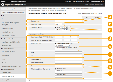 [Nome comune]Immettere i caratteri alfanumerici per il nome comune del certificato come necessario. “Common Name” (Nome comune) è spesso abbreviato come “CN”.