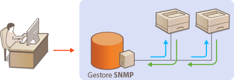 Con SNMP, le informazioni di gestione stampante, come protocolli di stampa e porte della stampante, possono essere monitorate e ottenute regolarmente da un computer in rete.