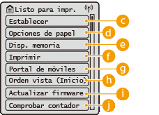 <Opciones de funciones>, <Preferencias>, y muchas otras configuraciones del equipo se inician desde este botón.