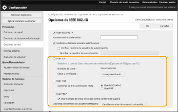 Seleccione [Usar IEEE 802.1X] y configure las opciones necesarias.