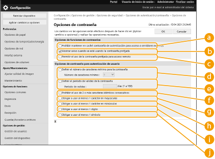 Para solicitar periódicamente a los usuarios que cambien su contraseña, seleccione esta casilla de verificación y especifique un período en [Período de validez].