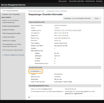 Bewerking van licentiebestanden kan soms nodig zijn buiten het installeren van een MEAP-toepassing. Zelfs wanneer bijvoorbeeld de gelicentieerde tellerwaarde is overschreden of de gebruiksperiode is verlopen, kunt u de MEAP-toepassing blijven gebruiken als u een licentiebestand toevoegt. Als u bovendien een MEAP-toepassing wilt verwijderen, moet u eerst het licentiebestand verwijderen.