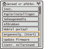 Selecteer <Wrgavevolg. (Start)> om het scherm <Home> aan te passen door de knoppen te verplaatsen. Het scherm aanpassenU kunt instellingen voor de schermweergave wijzigen, zoals welk scherm verschijnt zodra de machine wordt aangezet en of de melding verschijnt hoeveel papier en toner er nog is. <Weergave-instellingen> |
