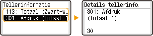 U kunt het totale aantal pagina's dat is afgedrukt controleren. Het aantal afdrukken omvat afdrukken van de geheugenmedia en de lijst en afdrukken van gegevens van computers.